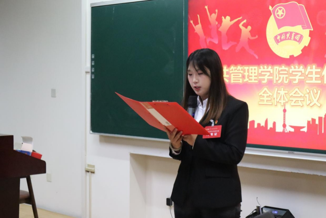 公共管理学院第五次学生代表大会在中国共产主义青年团团歌《光荣啊,中国共青团》中顺利闭幕。