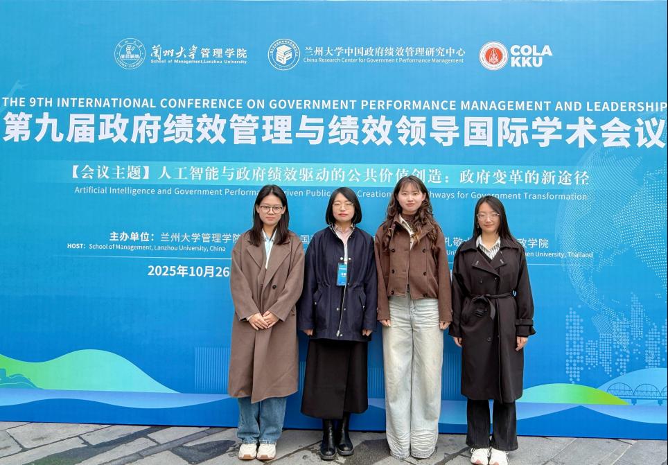2025年10月26日,由兰州大学管理学院、兰州大学中国政府绩效管理研究中心等联合主办的第九届政府绩效管理与绩效领导国际学术会议在兰州大学召开。来自北京大学、清华大学、香港城市大学、澳门大学、美利坚大学、罗格斯大学、佛罗里达州立大学、内蒙古大学、《新华文摘》杂志社等高校和单位的百余位专家学者与实务界代表齐聚兰州,围绕政府绩效治理的理论创新和实践转型展开深度研讨。我院教师姜雅婷副教授、博士研究生付冀珊、硕士研究生于潇寒、本科生卫艺轩参加了此次学术会议,并同与会学者进行了交流。