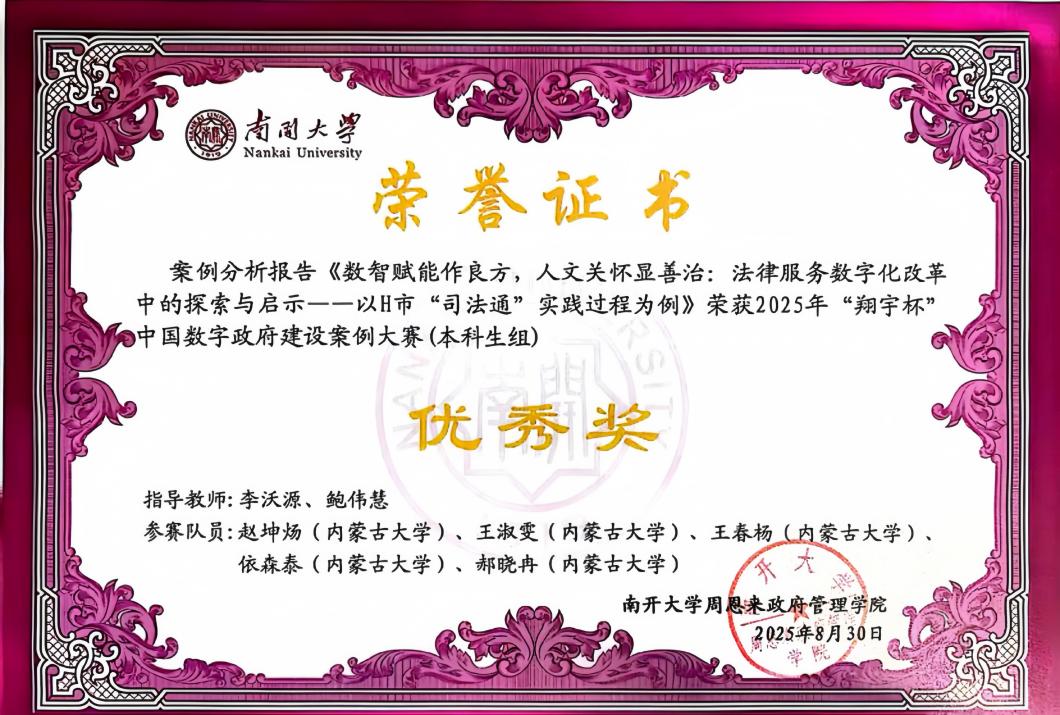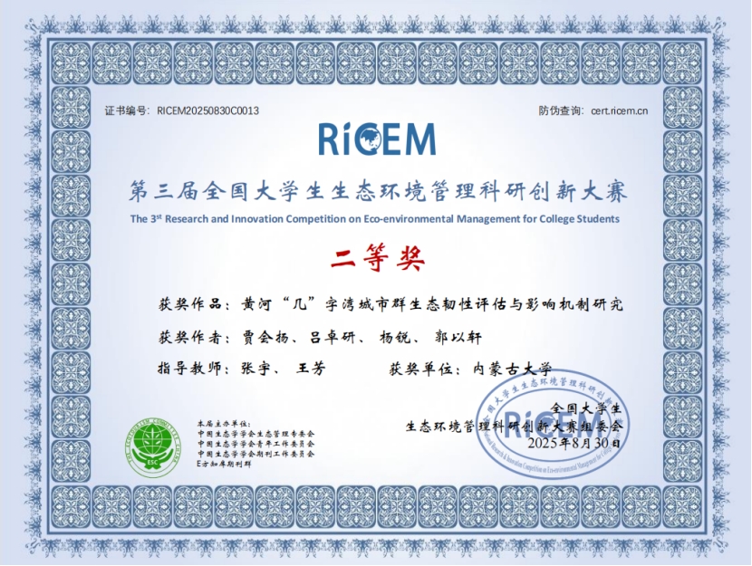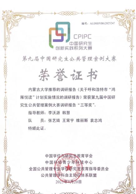 3.2022级博士研究生李文慧获内蒙古大学研究生高水平科研成果奖。