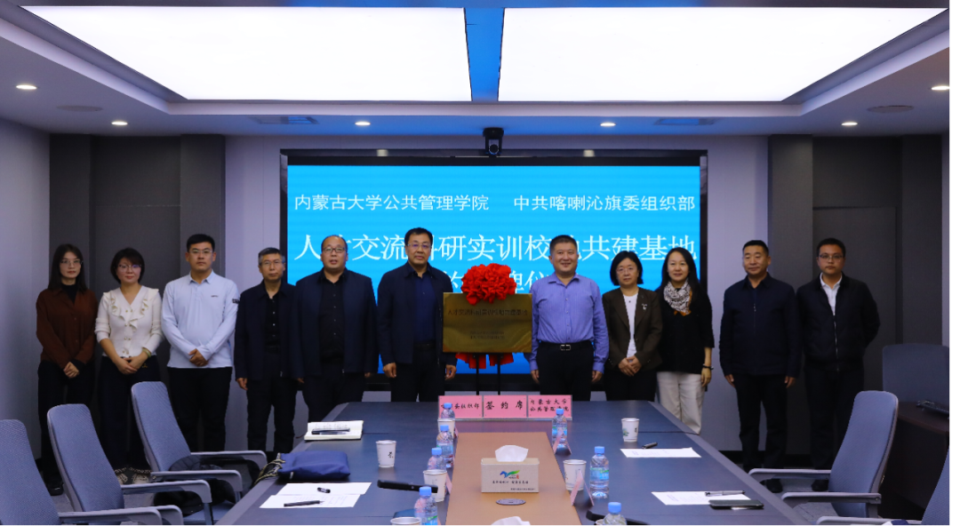 2025年10月30日,内蒙古大学公共管理学院与赤峰市喀喇沁旗委组织部共建人才交流科研实训基地揭牌暨校地合作签约仪式在喀喇沁旗成功举行。此次签约揭牌仪式由喀喇沁旗委组织部常务副部长张嘉岩主持。喀喇沁旗委常委、组织部部长张永桥,以及旗委编办、教育局、人力资源和社会保障局、工信和科技局、党建和人才服务中心等相关单位负责同志,内蒙古大学公共管理学院副院长安华、那岚业,土地资源管理系教师隋洪鑫、本科生辅导员李...